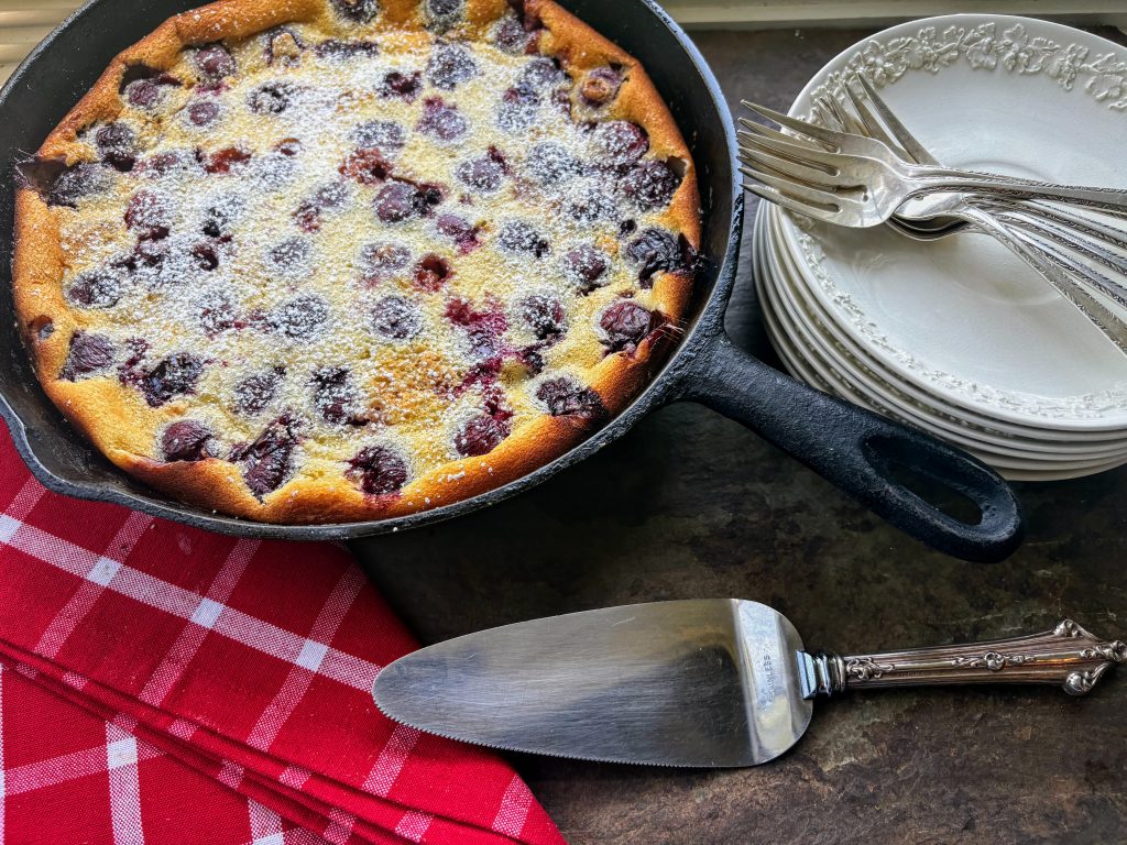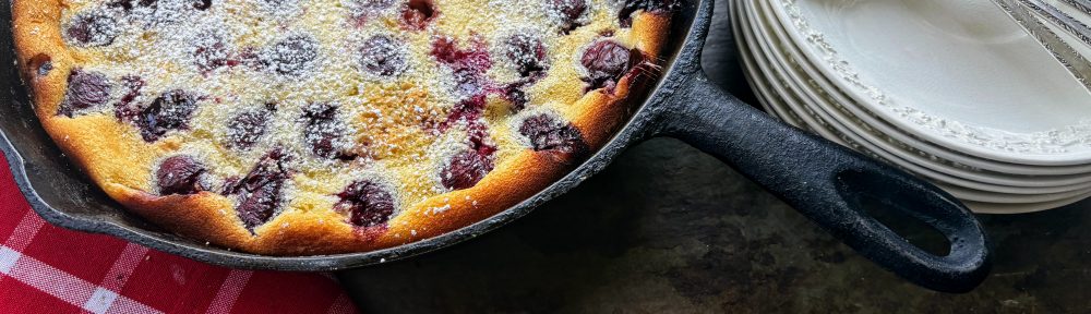 If you asked me to choose three classic French desserts for home cooks to make, I’d include crème caramel, profiteroles, and clafoutis on my list. For the first, you’d need to have a deft hand at making caramel, and for the second, you’d have to master preparing classic choux pastry for the shells. However, for the last no special skills are required. You whisk together a simple batter, then pour it over cherries arranged in a baking dish or skillet before transferring this mixture to the oven to bake. Voilà, you have a splendid dessert.
